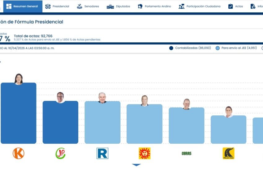 El avance del conteo en la elección presidencial que realiza la Oficina Nacional de Procesos Electorales