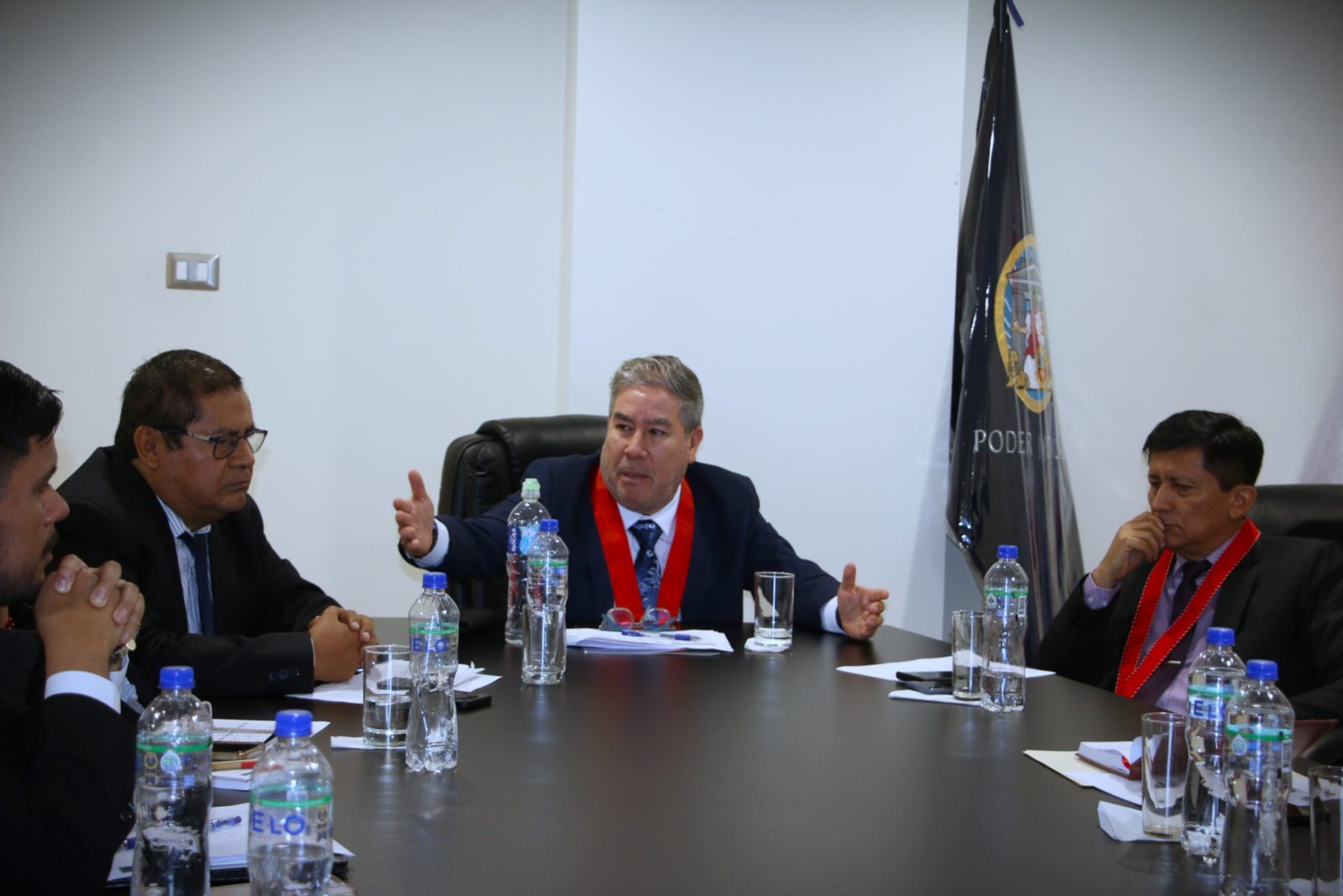 En la reunión participaron el presidente de la Junta de Fiscales Superiores, John Martel Trujillo; la directora de la Defensa Pública, Cecilia Cook Gonzáles; el coronel PNP Néstor Silva Ángeles; el gerente judicial Jesús Quintana Rojas; y el administrador del Módulo Penal, Aldo Coronel Luján.