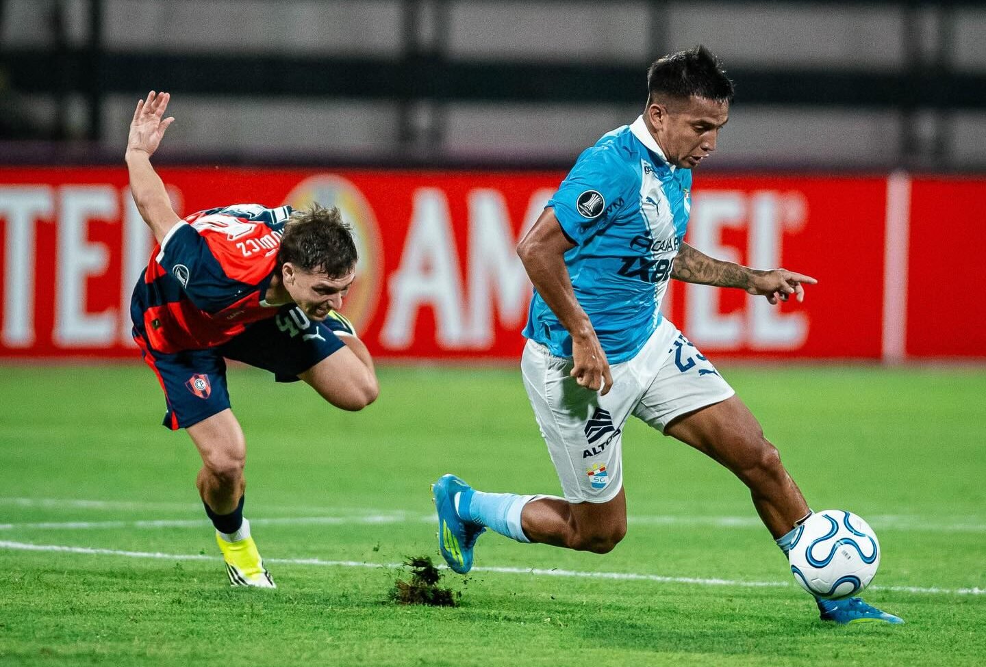 El partido comenzó con un trámite equilibrado, pero los celestes se adueñaron del control y generaron varias ocasiones de peligro. El juvenil Maxloren Castro fue uno de los más destacados en la ofensiva, con desbordes veloces y buen manejo del balón. Precisamente, Castro protagonizó la jugada que cambió el rumbo del encuentro: la expulsión del paraguayo Cecilio Domínguez, quien lanzó el balón contra el rostro del jugador rimense. Tras la revisión del VAR, el árbitro mostró la tarjeta roja por agresión, dejando a Cerro con un hombre menos desde el final del primer tiempo.