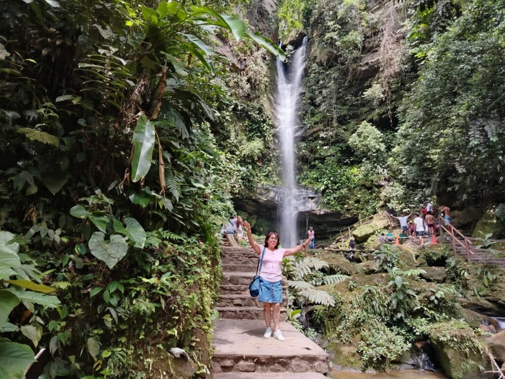 Muchas veces a toda caída de agua le llamamos catarata o cascada, pero aquí en Ahuashiyacu tenemos catarata. Exacto. A la espalda de nosotros tenemos una hermosa caída de agua delgada que se considera catarata. De veinte metros a más considérese como catarata.