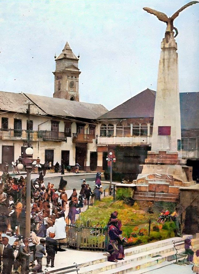 1879, 7 de mayo, 07:00 h. El Batallón de Voluntarios Columna Pasco partió de la calle Diputación. Los 220 pasqueños defendieron la patria en la guerra contra Chile (batallas de San Francisco, Tarapacá y Arica). Chile declaró la guerra el 5-abril-1879.