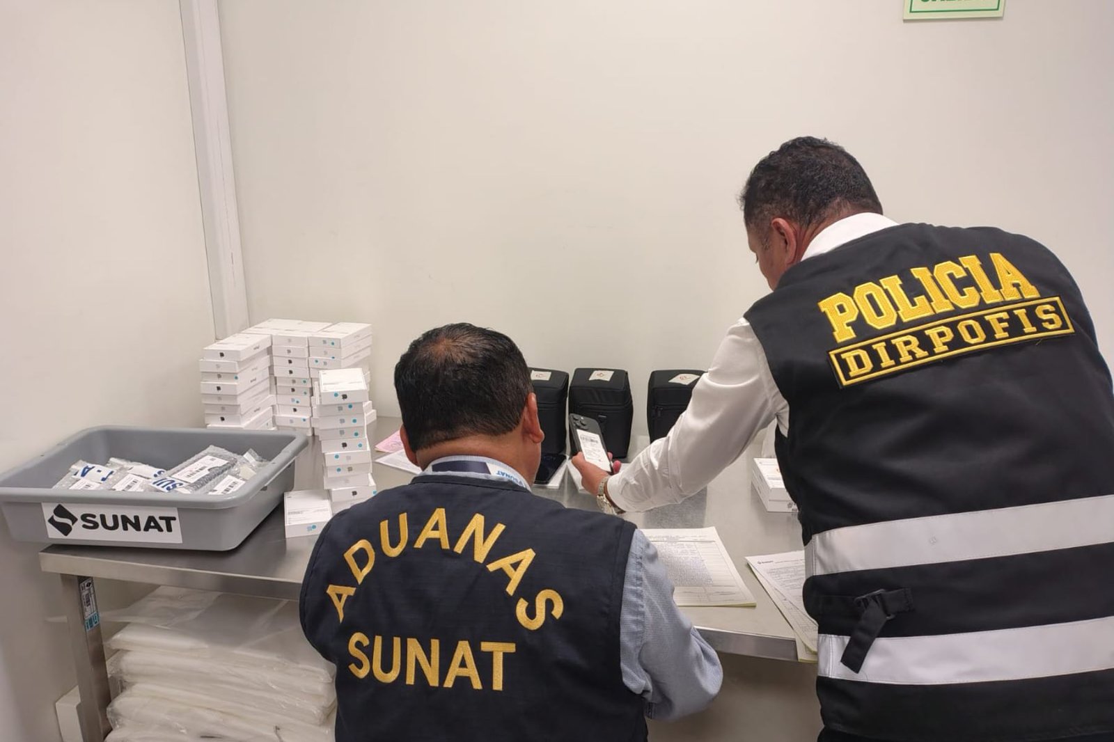 La Superintendencia Nacional de Aduanas y de Administración Tributaria (Sunat) informó que incautó 109 teléfonos celulares de alta gama y diversos equipos electrónicos valorizados en más de 400,000 soles en el Aeropuerto Internacional Jorge Chávez. La intervención se realizó a una pasajera proveniente de Estados Unidos con escala en Panamá, quien pretendía comercializar los productos en el país sin pagar los impuestos correspondientes.