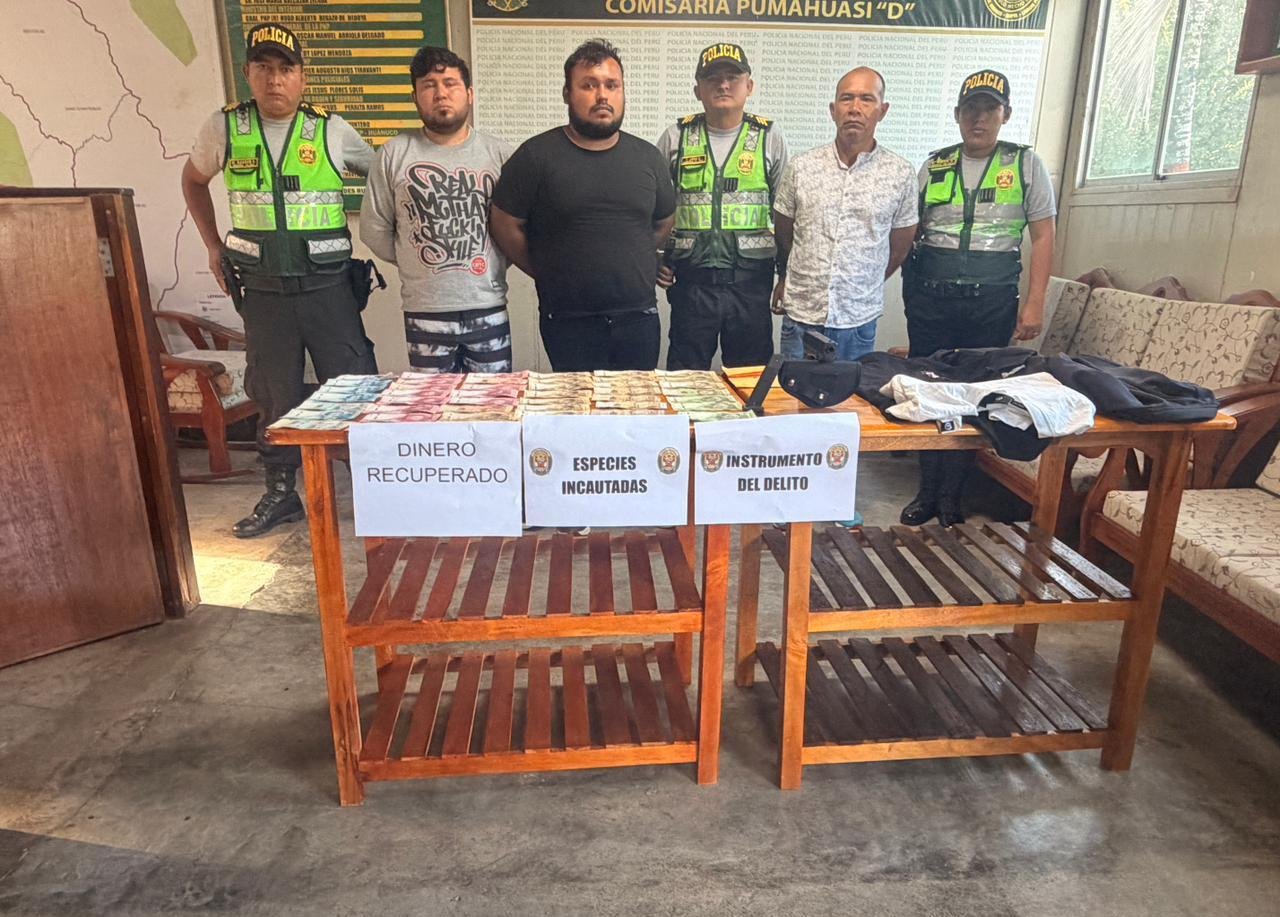 Al realizar el registro personal, los agentes del orden dirigidos por el teniente PNP Orlando Paredes Ruíz encontraron en poder de Callan Tarazona 2031 soles que no supo explicar su procedencia, por lo que fue detenido. Al ser consultado por el resto del dinero, habría indicado que tenía su cómplice, por lo que los policías optaron por dirigirse al caserío de Santa Lucía en el distrito de Pueblo Nuevo, donde fue capturado Piter Amasifuen Paredes (49).