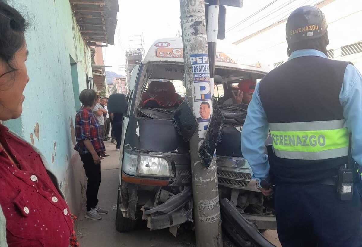Choque de combi contra poste de concreto en una calle de la ciudad de Huánuco dejó dos heridos
