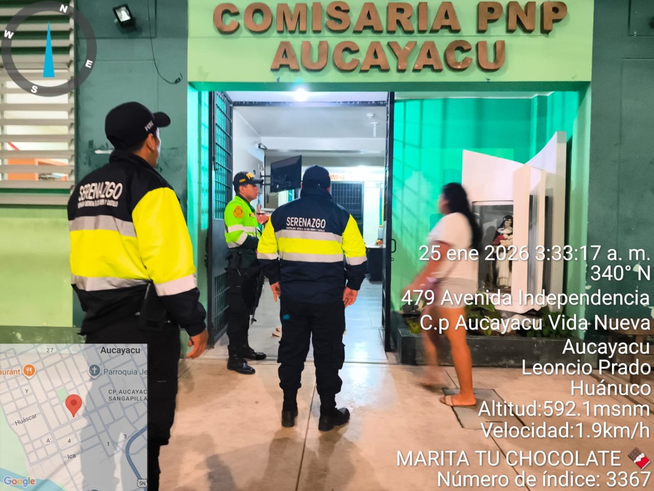 Adjuntando fotos, la municipalidad indica que los serenos ‘actuaron estrictamente de acuerdo al protocolo en este caso, conduciendo al retenido a la comisaría local e ingresándolo hasta el área de recepción, donde quedó a disposición de la Policía tal como registra la fotografía del 25 de enero’.