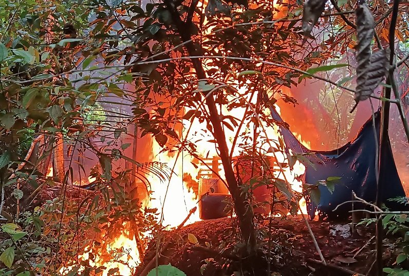Policías del Departamento de Operaciones Tácticas Antidrogas (Depotad) Huánuco incursionaron en el sector Nueva Esperanza, distrito de José Crespo y Castillo en la provincia de Leoncio Prado, dónde destruyeron un laboratorio clandestino de elaboración de pasta básica de cocaína.